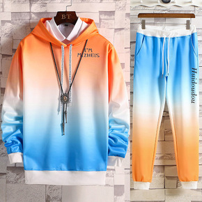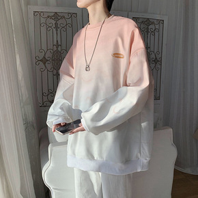 渐变圆领卫衣男春秋ins韩版宽松百搭套头打底衫港风...