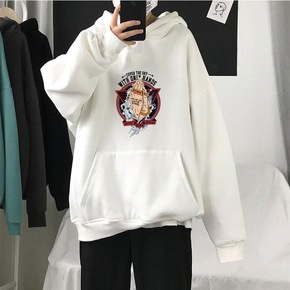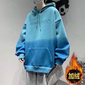 加绒加厚连帽卫衣男港风宽松冬季长袖韩版潮流情侣上衣...