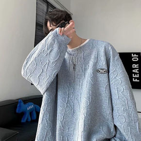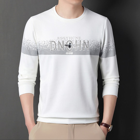 春季韩版提花卫衣男士修身圆领长袖T恤衫青年潮牌休闲...