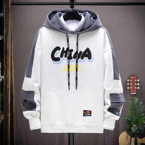 圆领外套男韩版潮流大码印花卫衣国潮原创长袖帽衫中国...