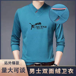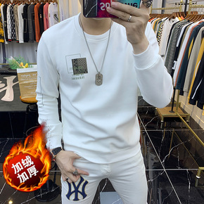 冬款时尚简约大气加绒保暖卫衣男式韩版修身潮流套头长...