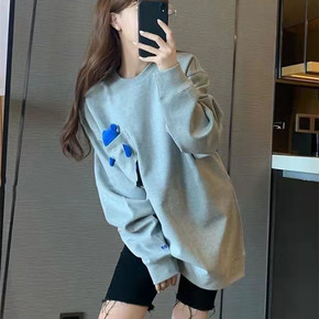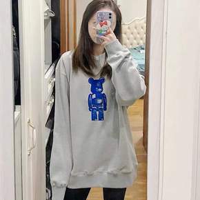现货 春秋ADER圆领植绒蓝色小熊印花卫衣 韩版休...