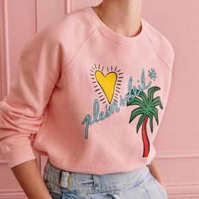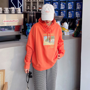 情侣款加绒卫衣2022新品爱心椰树男女同款薄绒卫衣...