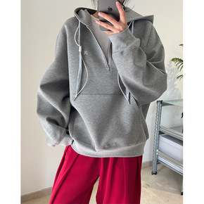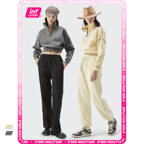 INF女装|2022春夏新品撞色缝线半拉链卫衣修身...
