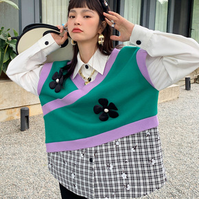 S3739撞色厂家减龄小众设计新颖时尚潮流百搭春季...