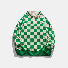 衣道古着2022春装拼色格子长袖POLO衫男潮牌宽...