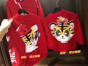 冬季新款老虎头新年卫衣红色亲子款一件代发包邮...