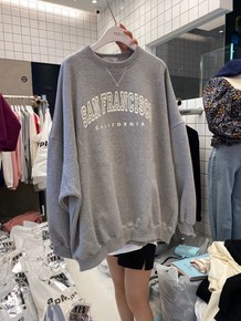 22春秋新品斐家空气棉工厂现货两色圆领套头女卫衣一...