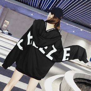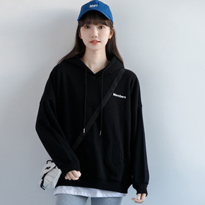 2022春秋新款黑色连帽卫衣女ins薄款宽松套头上...