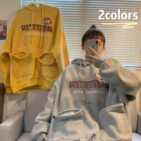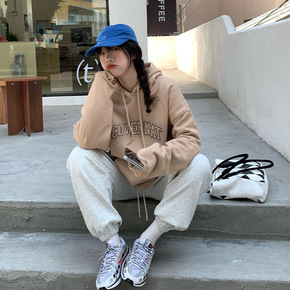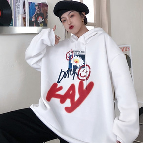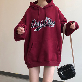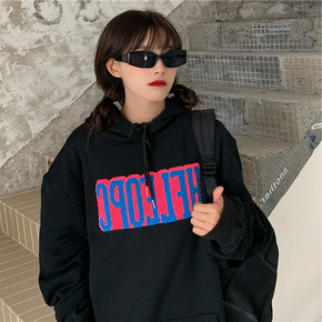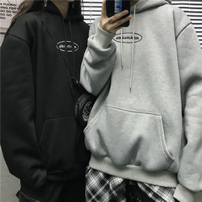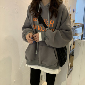 新款韩版秋冬季超火加绒加厚连帽宽松长袖卫衣女ins...