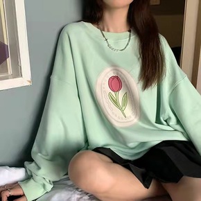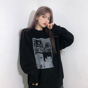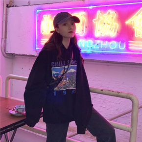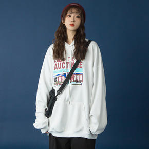 BOSSCHEN【美式复古】百搭bf宽松加绒卫衣女...