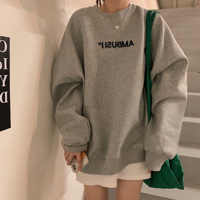 欧美跨境无帽卫衣女秋冬ins加绒加厚bf宽松慵懒风...