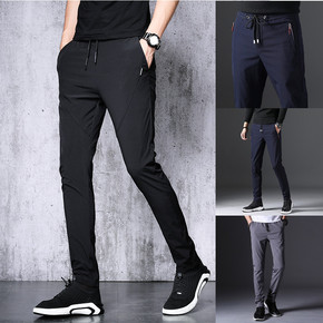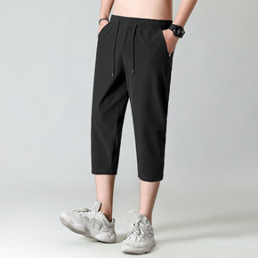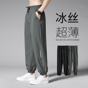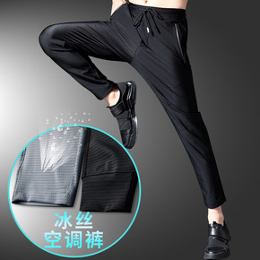 男士休闲运动裤子潮流夏季薄款冰丝空调裤修身百搭九分...