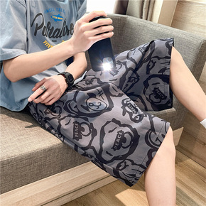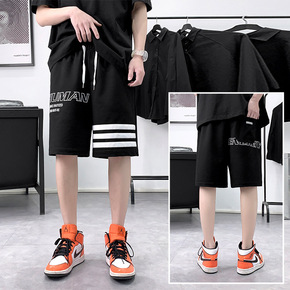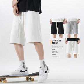 夏季港风潮牌宽松直筒短裤运动休闲五分裤男短裤日系纯...