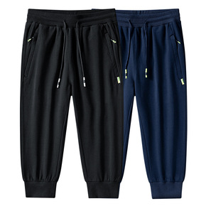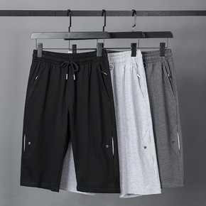 运动裤男纯棉宽松大码七分裤男夏季薄款松紧短裤男纯色...