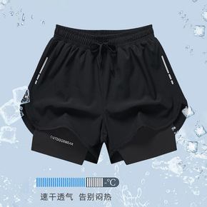 新款外贸男士沙滩裤运动短裤速干跑步训练裤有内胆休闲...