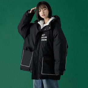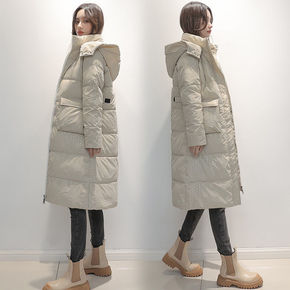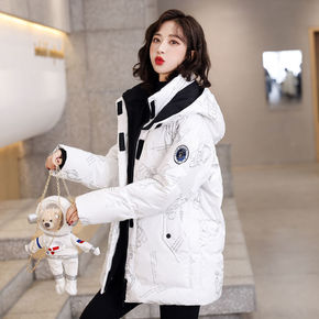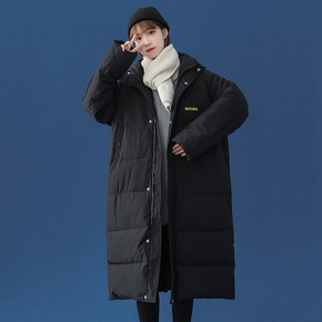 棉服女中长款2021年新款宽松冬季涤纶连帽港风棉衣...