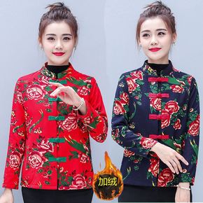 中老年东北大花棉袄女民族风盘口唐装秋冬棉服妈妈网红...