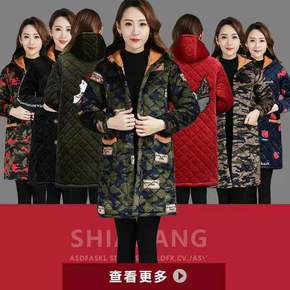 冬季新款加绒加厚外套女中长款罩衣家居棉服工作服妈妈...