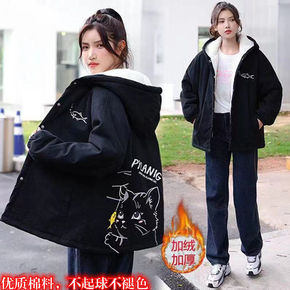 工装棉服女2021秋冬新款宽松韩版学生棉衣加绒加厚...