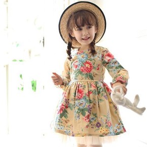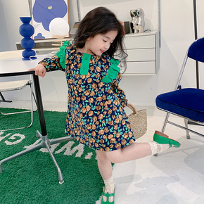 女童韩版娃娃裙2022春新款中小童复古碎花棉布连衣...