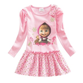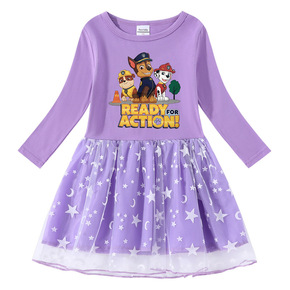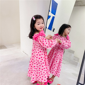 外贸粉色可爱女童长袖连衣裙3D印花卡通2021春秋...