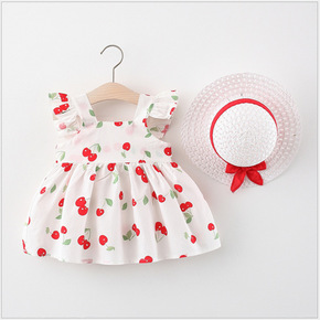 2022韩版无袖童裙 草莓印花女童连衣裙 牵牛花夏...