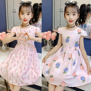 女童短袖连衣裙2022夏装新款儿童洋气印花棉布裙小...
