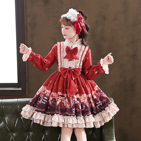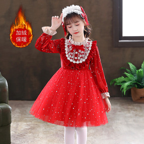 儿童秋冬装金丝绒红色潮范洛丽塔连衣裙小女孩生日公主...