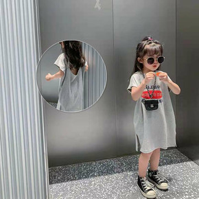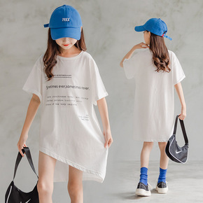2021夏季新款中大童韩版不规格连衣裙女童纯棉T裙...