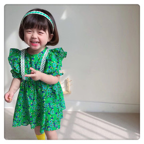2022夏季新款女宝宝连衣裙印花童裙潮女童韩版花边...