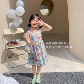女童连衣裙 2022夏季新款韩版童装背带裙花朵连衣...