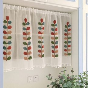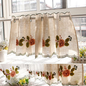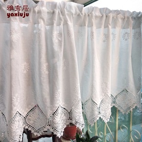 棉布刺绣篓空门帘隔断帘橱柜帘短窗帘 厨房卧室半帘 ...