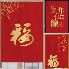 中式红色喜庆布艺门帘家用福字卧室隔断帘厨房厕所遮挡...