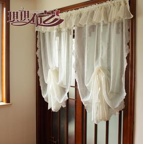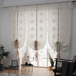 美式乡村窗纱半帘 气球帘提拉帘升降纱帘飘窗罗马帘厨...