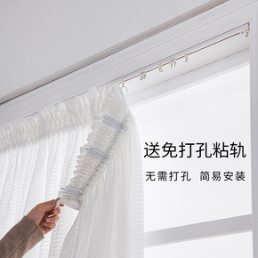 免打孔易安装绷纱帘杆网红玻璃门帘魔术贴内开遮光隔热...