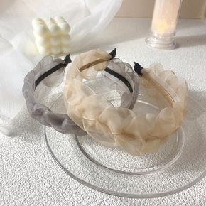 欧根纱交叉麻花宽发箍日韩简约网纱压发头箍刘海发卡超...