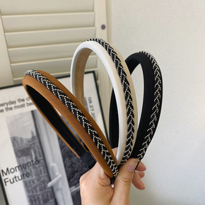 Busan发箍女韩国时髦复古皮质细头箍简约百搭纯色...