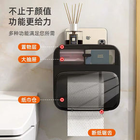 免打孔卫生间纸巾盒多功能架置物架厕所放纸盒抽纸盒卫...