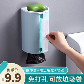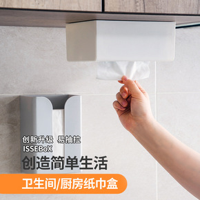 免打孔纸巾盒卫生间厨房抽纸盒客厅纸盒厕所垃圾袋收纳...