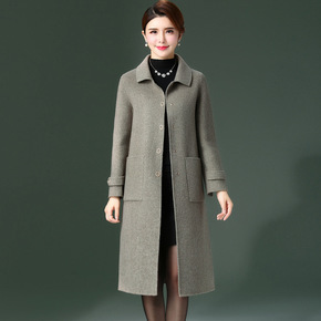 中年女式羊毛呢大衣秋冬洋气妈妈装双面呢中老年羊驼绒...