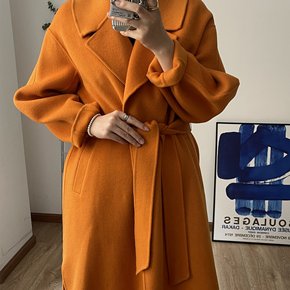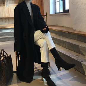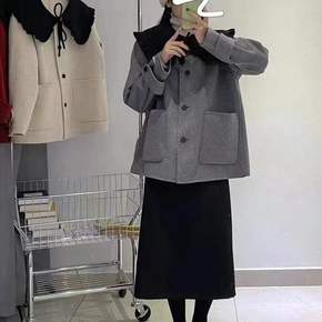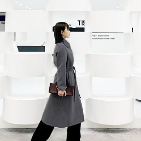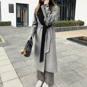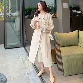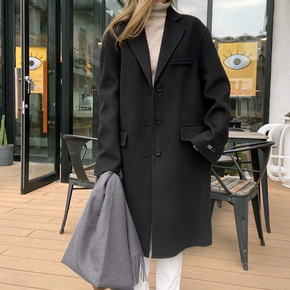 2022年秋冬韩国新款直筒型过膝长款双面手缝毛呢大...