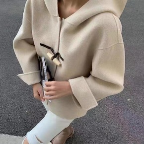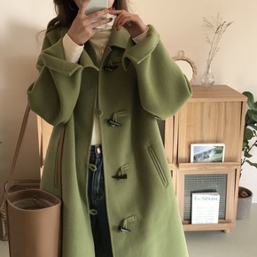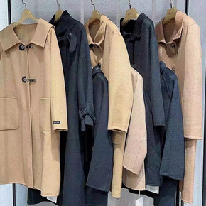 2022年夏季双面羊绒大衣女新款牛角扣秋冬装中长款...