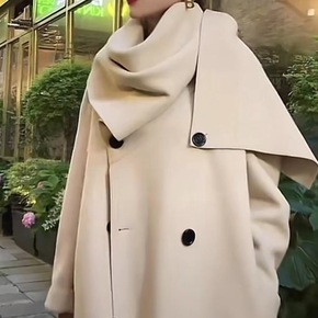 2022秋冬新款高端围巾款双面羊毛大衣女长款设计师...
