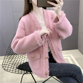 实拍小香风流苏V领毛衣开衫女2021秋冬新款宽松针...