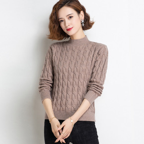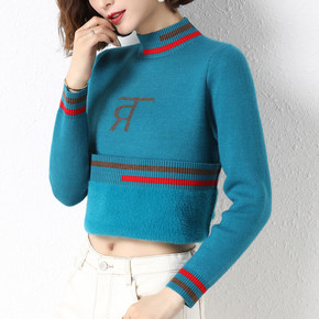麻花短款毛衣女士秋冬装2021年新款半高领修身针织...