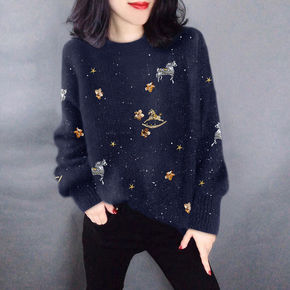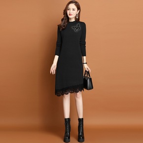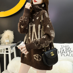 2020秋冬装宽松中长款针织衫毛衣裙刺绣毛衣女打底...