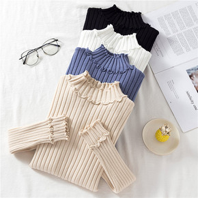 秋冬装韩版半高领加厚毛衣女木耳边针织衫短款套头长袖...
