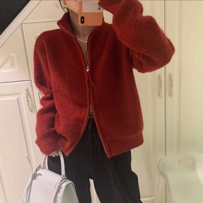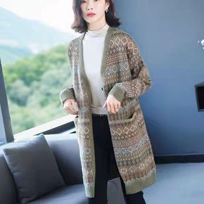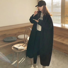 厂家批发 厚实!像大衣的质感连帽开衫新款中长款针织...