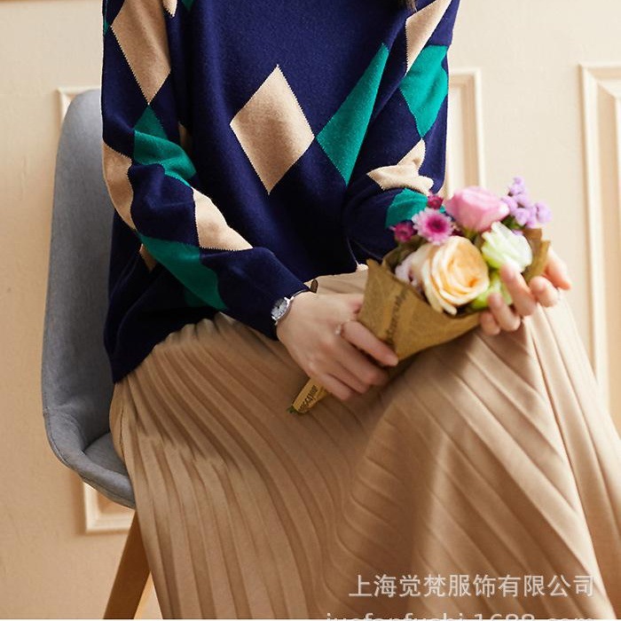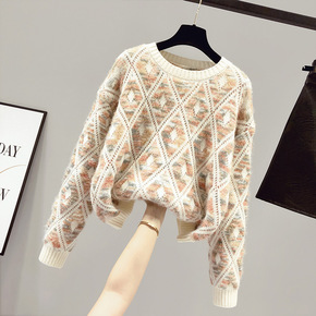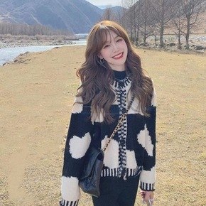 2021冬装宽松复古上衣百搭显瘦洋气牛奶纹毛衣女软...